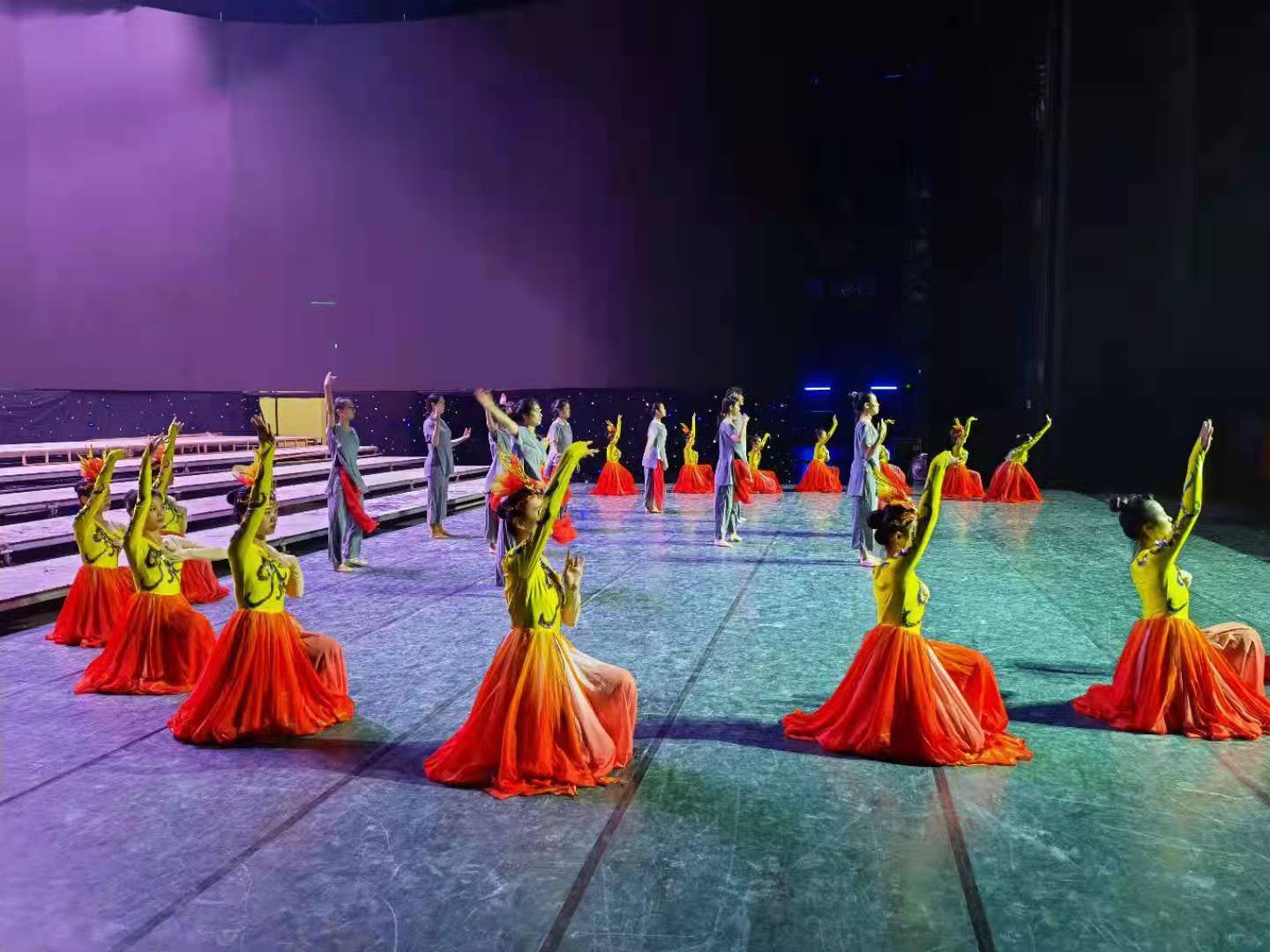 從5月26日起,我系舞蹈教育專(zhuān)業(yè)學(xué)生參與第一篇章《把一切獻(xiàn)給黨》的群舞部分排練。在排練期間,我系領(lǐng)導(dǎo)高度重視,多次與主創(chuàng)團(tuán)隊(duì)進(jìn)行溝通,確保排練工作有序進(jìn)行。舞蹈教研室全體教師作為指導(dǎo)老師參與排練,為了讓學(xué)生能更好地理解作品,他們耐心地為學(xué)生講解作品中所要表達(dá)的思想情感,引領(lǐng)學(xué)生感受紅歌精神。為了呈現(xiàn)出更好的演出效果,老師們對(duì)每一個(gè)動(dòng)作細(xì)節(jié)的要求都精益求精、一絲不茍。學(xué)生們?cè)诶蠋焸兊墓奈韬蛶?dòng)下紛紛積極地投入到各自的角色狀態(tài)中,排練場(chǎng)上熱火朝天、揮汗如雨。此次演出,我系學(xué)生以飽滿的熱情,圓滿完成了演出任務(wù),全面展現(xiàn)了閩師人的精神面貌,贏得了市領(lǐng)導(dǎo)和同行們的一致好評(píng)。