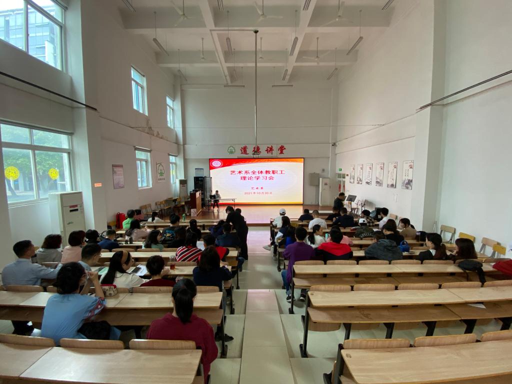 2021年10月20日下午,藝術(shù)系(福州市藝術(shù)學(xué)校)在甘蔗校區(qū)教學(xué)樓階梯教室召開了全體教職工理論學(xué)習(xí)會(huì),會(huì)議由黨總支宣傳委員陳志勇主持,藝術(shù)系(福州市藝術(shù)學(xué)校)全體教職工參加。
