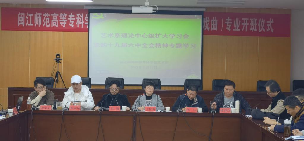 2021年11月17日下午,藝術系(福州市藝術學校)在甘蔗校區(qū)行政樓五樓大會議室召開理論中心組擴大學習會專題學習黨的十九屆六中全會精神。會議由藝術系黨總支書記江柳青主持,藝術系(福州市藝術學校)全體教職工參加。