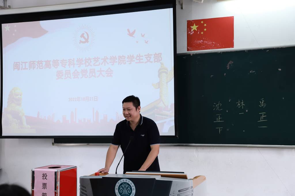 大會在莊嚴(yán)的國歌中拉開帷幕。會上,全體黨員采取無記名投票和差額選舉辦法,選舉產(chǎn)生沈錦城、禹亦凡2位同志為中共閩江師范高等??茖W(xué)校藝術(shù)學(xué)院學(xué)生支部委員會委員。緊接著學(xué)生支部委員會召開第一次全體會議,選舉沈錦城同志為組織委員兼紀(jì)檢委員,禹亦凡同志為宣傳委員,并明確了各委員工作職責(zé)。