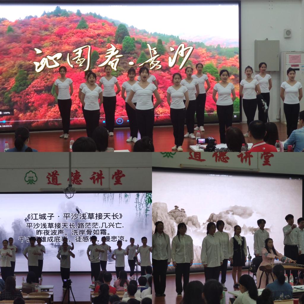本次比賽以紅色詩(shī)詞集體朗誦為主要形式,共有11個(gè)班級(jí)參賽,每個(gè)班級(jí)誦讀兩首紅色經(jīng)典詩(shī)詞。比賽中,每個(gè)班級(jí)結(jié)合自己的專業(yè)特長(zhǎng),分別以舞蹈、戲曲、器樂加朗誦的形式,演繹了《沁園春·雪》《沁園春·長(zhǎng)沙》《大江歌罷掉頭東》《蔣桂戰(zhàn)爭(zhēng)》《西江月·井崗山》等22首紅色詩(shī)詞。同學(xué)們以飽滿的激情,謳歌建黨百年光輝歷程和輝煌成就,唱響了愛黨愛國(guó)愛社會(huì)主義的主旋律。