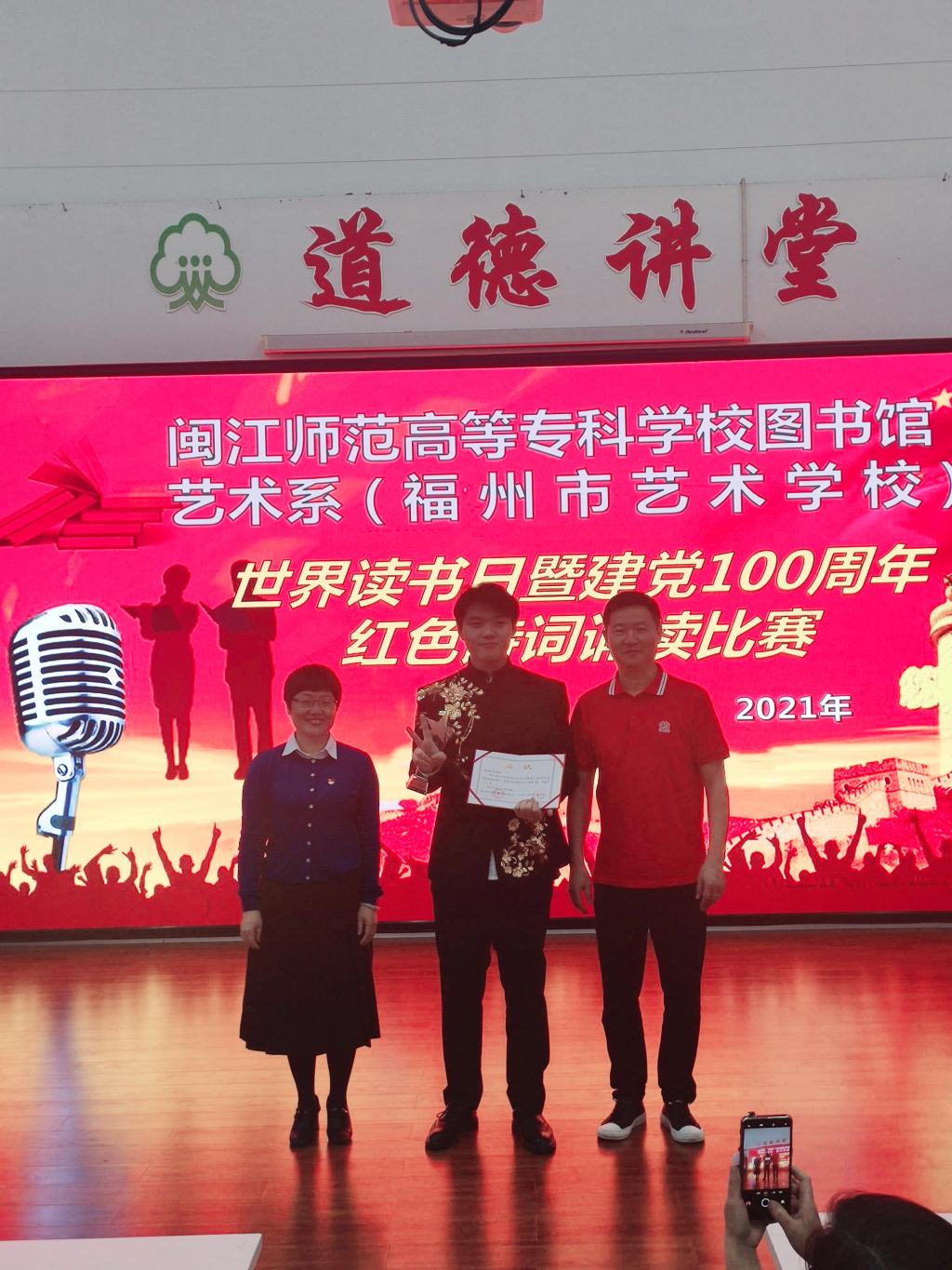 經(jīng)過激烈的角逐,音樂中職班、2020級(jí)閩劇班、2019與2020級(jí)舞教五年專合班分別獲得第一名、第二名及第三名。校圖書館館長(zhǎng)董志強(qiáng)、藝術(shù)系黨總支書記江柳青、藝術(shù)系黨總支副書記林萍分別為獲獎(jiǎng)班級(jí)頒發(fā)獎(jiǎng)狀及獎(jiǎng)杯。