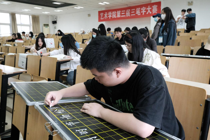 比賽分為硬筆字、毛筆字、粉筆字書寫比賽三個(gè)環(huán)節(jié),硬筆字和粉筆字比賽要求選手在規(guī)定時(shí)間內(nèi)分別完成規(guī)定古詩(shī)詞篇目書寫。每組結(jié)束后,由評(píng)委對(duì)作品進(jìn)行現(xiàn)場(chǎng)打分,從“三筆字”的間架結(jié)構(gòu)、字體筆鋒、規(guī)范美觀等方面進(jìn)行綜合評(píng)審,最終硬筆字作品中選出一等獎(jiǎng)2名、二等獎(jiǎng)3名、三等獎(jiǎng)4名,毛筆字作品中選出一等獎(jiǎng)1名、二等獎(jiǎng)2名、三等獎(jiǎng)3名,粉筆字作品中選出一等獎(jiǎng)1名、二等獎(jiǎng)3名。