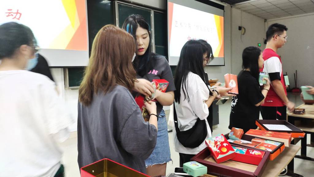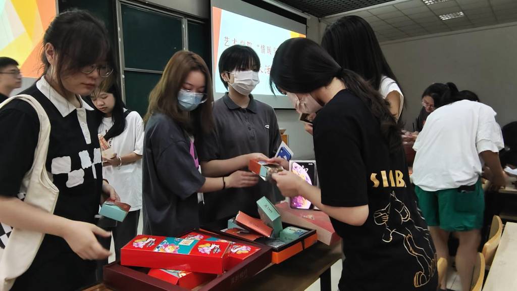 學院老師為新生同學準備了精美的盲盒禮物,并與同學們共同diy燈籠、寄明信片、博餅互猜……同學們熱情空前高漲。在制作diy禮物期間,老師還對動手能力強、工作效率高的同學進行獎勵,進一步提升了同學們的積極性,提升工作效率。大家在歡聲笑語中完成了禮物的制作。