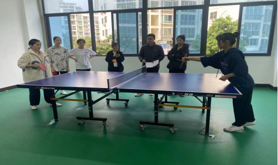 在四方桌旁,同學們“乒”出了活力,賽出了精彩。