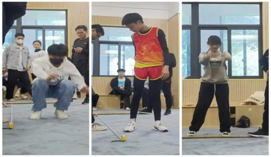 兩人一組,手牽手,肩并肩,齊心協(xié)力,共創(chuàng)佳績。