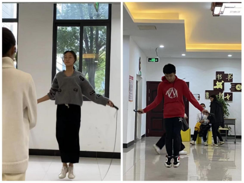 手里的跳繩像彩環(huán)一樣在飛舞,青春律動的節(jié)奏在此刻飄揚。