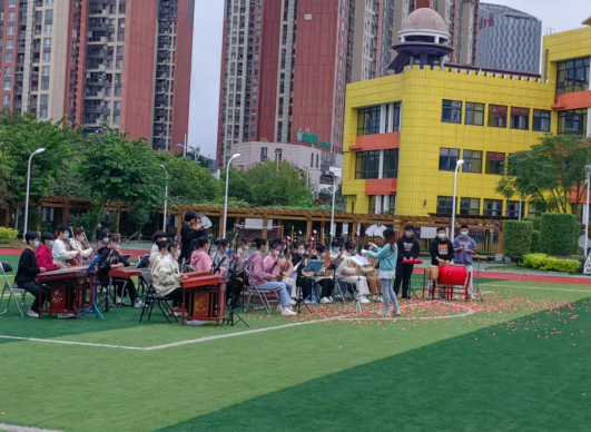 開幕式上,以專業(yè)為單位,在廣闊的綠茵場上,為大家呈現(xiàn)上精彩紛呈的文藝演出。音教專業(yè)學生深情演唱了的歌曲《飛云之下》,舞教專業(yè)學生獻上了律動十足的舞蹈《ama串燒》、器樂專業(yè)學生演奏了喜慶的民樂聯(lián)奏《樂動飛揚》,戲曲專業(yè)學生表演了古風古韻的戲曲組合《翰墨閩韻》,舞蹈專業(yè)學生跳出富有青春氣息的舞蹈《飛舞青春》。每個節(jié)目都獨具匠心,表演現(xiàn)場氣氛熱烈,師生情緒沸騰澎湃。