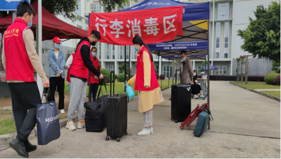 雖逢周末,但志愿者們自覺放棄了休假時間,早早地趕到學校。他們引導(dǎo)學生有序報到,積極地為返校學生進行行李消毒,幫助學生將沉重的行李提到宿舍。一天的志愿者服務(wù),讓大家都深感疲憊,但沒有一個人有怨言,大家臉上都洋溢著善意的微笑,因為我們的服務(wù)為學生帶來了方便,也為福州市藝術(shù)學校增添了一份溫暖的色彩。