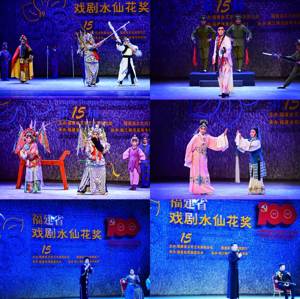 3月28日下午,第十五屆福建省戲劇“水仙花”比賽(閩師專)專場在學(xué)校旗山校區(qū)學(xué)術(shù)報告廳緩緩拉開帷幕,校黨委書記陳榮生、校長楊建義及副校長林旻等校領(lǐng)導(dǎo)出席并觀看本次比賽。伴隨著不絕于耳的鑼鼓絲竹弦樂聲,閩劇新秀們以專業(yè)的態(tài)度、飽滿的熱情、精彩的演繹,在傳承和創(chuàng)造的舞臺上揮灑青春風(fēng)流。師生同臺競技,現(xiàn)場熱鬧非凡,既有戲曲表演(閩劇表演方向)專業(yè)師生傾情演繹的《水牢摸印》、《紅裙記·會子》及《王蓮蓮·懺悔》等經(jīng)典傳統(tǒng)折子戲,又有戲曲表演(器樂方向)專業(yè)師生精心獻(xiàn)上的器樂演奏《林則徐與王鼎》、《楊門女將》等經(jīng)典曲目選段,觀眾反響熱烈,演繹別樣精彩。