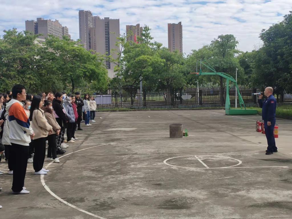 火災(zāi)逃生演練結(jié)束后,師生們?cè)诨@球場(chǎng)進(jìn)行滅火器滅火演練。班主任在現(xiàn)場(chǎng)維持秩序,閩侯縣消防救援大隊(duì)消防員指導(dǎo)學(xué)生進(jìn)行滅火器的使用,在保證學(xué)生安全的同時(shí),讓學(xué)生真正學(xué)會(huì)如何使用滅火器撲滅火災(zāi)。
