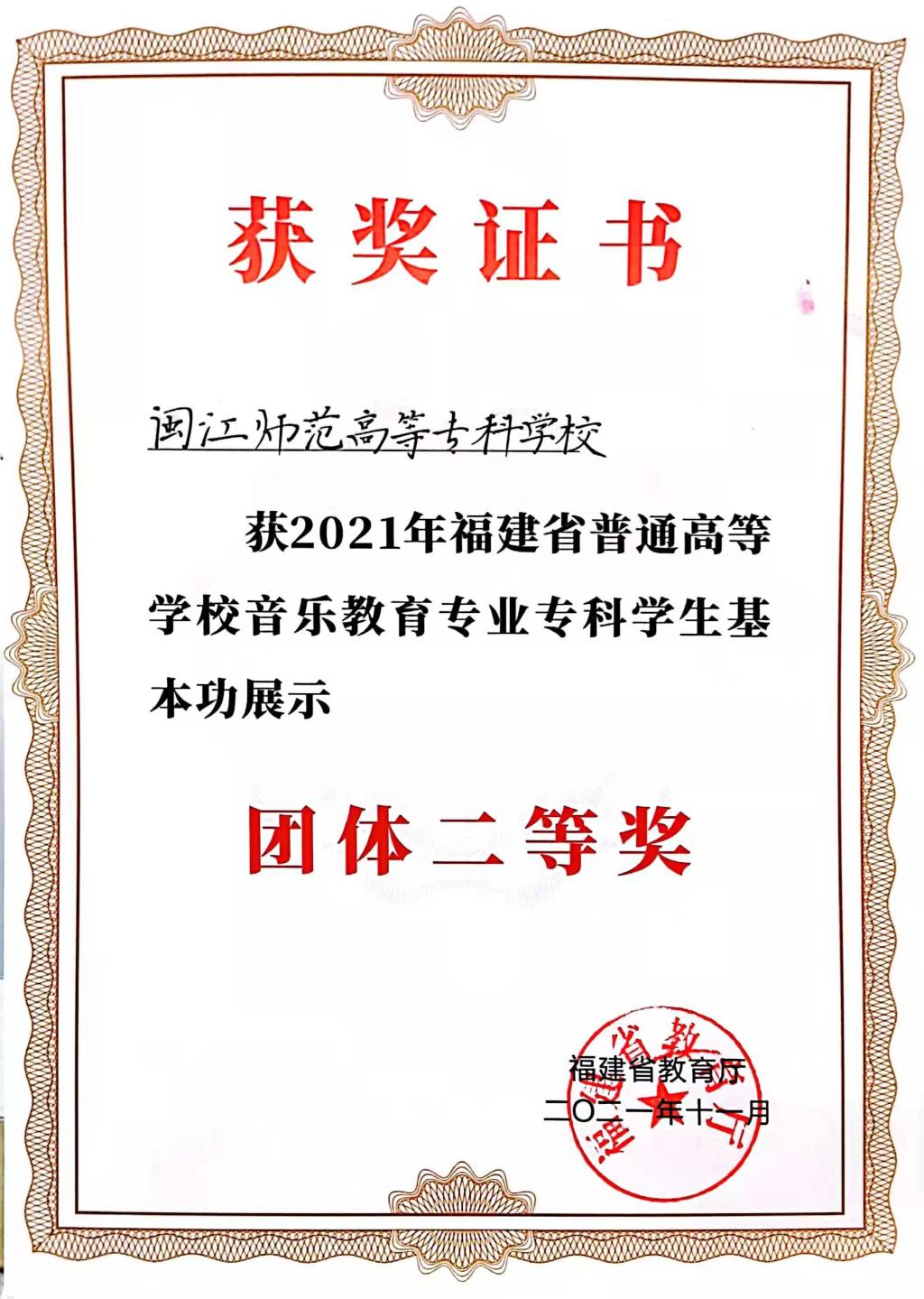 2021年11月17-19日,由福建省教育廳主辦的2021年福建省普通高校音樂(lè)教育專業(yè)學(xué)生基本功展示活動(dòng)在泉州師范學(xué)院舉辦。本屆活動(dòng)設(shè)微課、合唱指揮、自彈自唱、中外樂(lè)器演奏、歌唱與伴奏、舞蹈六大板塊基本功展示。大家齊聚一堂,切磋“教”藝。經(jīng)過(guò)三天的激烈角逐,我校音樂(lè)教育專業(yè)由王芊芊、何瑞玲、游苑茹三位同學(xué)組成的團(tuán)隊(duì),榮獲音樂(lè)教育專業(yè)??茖W(xué)生基本功展示團(tuán)體二等獎(jiǎng),微課展示單項(xiàng)獎(jiǎng)、合唱指揮單項(xiàng)獎(jiǎng)、歌唱與伴奏單項(xiàng)獎(jiǎng)以及個(gè)人全能二等獎(jiǎng)等優(yōu)異成績(jī),展示了我校藝術(shù)系音樂(lè)教育專業(yè)學(xué)生的優(yōu)良素質(zhì)和專業(yè)水平,也體現(xiàn)了我校在音樂(lè)教育專業(yè)人才培養(yǎng)的堅(jiān)持和不懈努力所取得的工作成效。