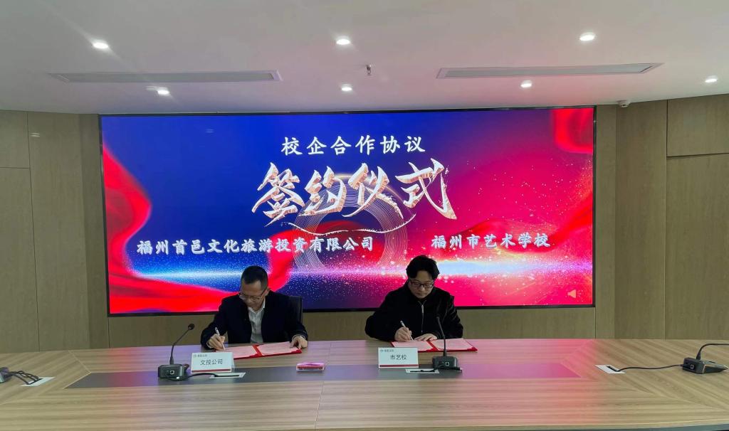 為深化校地共建,推動(dòng)學(xué)校教學(xué)科研成果轉(zhuǎn)化,助力閩侯經(jīng)濟(jì)文化建設(shè),1月12日上午,福州市藝術(shù)學(xué)校與福州首邑文化旅游投資有限公司在文投公司舉行校企合作簽約儀式。閩侯縣政協(xié)副主席黃敏,閩江師范高等專科學(xué)校藝術(shù)系主任、福州市藝術(shù)學(xué)校校長(zhǎng)徐青、閩江師范高等??茖W(xué)校藝術(shù)系副主任陳洪翔,福州首邑文化旅游投資有限公司董事長(zhǎng)林榕、副總經(jīng)理董炳強(qiáng)出席簽約儀式。閩江師范高等??茖W(xué)校甘蔗校區(qū)綜合辦負(fù)責(zé)人、閩侯縣院校服務(wù)工作專班及文投公司相關(guān)部門負(fù)責(zé)人參加儀式。