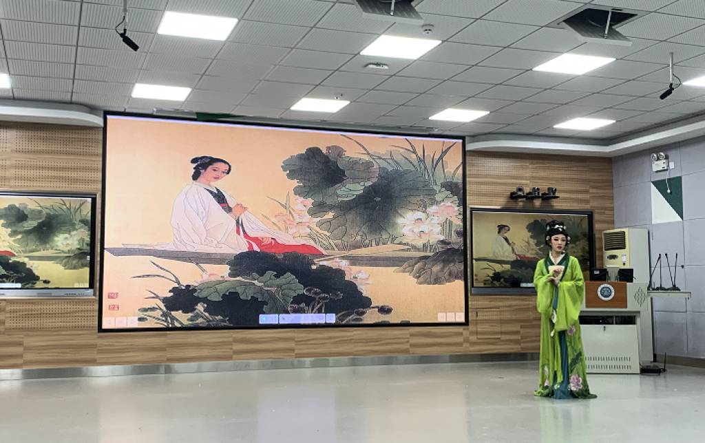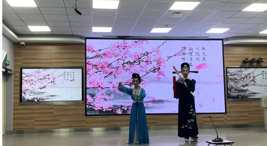 在經(jīng)典古詩詞沈園二首《聲聲慢》、《釵頭鳳》朗誦中,表演藝術(shù)專業(yè)的同學(xué)們展現(xiàn)了越劇身段元素,為朗誦作品增添了別樣風(fēng)采,展現(xiàn)我們對(duì)中華經(jīng)典的傳承與創(chuàng)新。