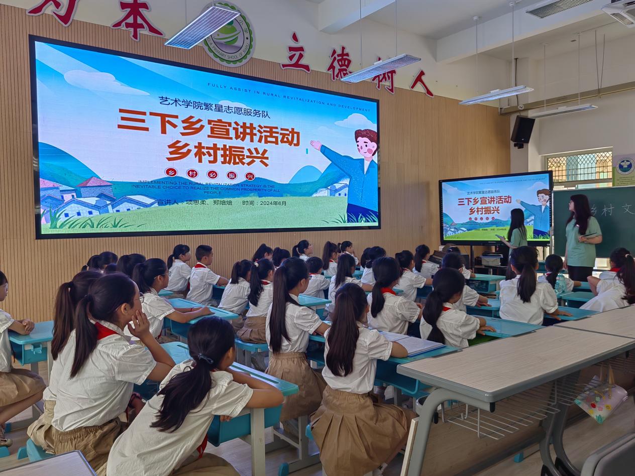 結(jié)合大學生暑期三下鄉(xiāng)社會實踐,我校與霞浦縣共同開展暑期藝術(shù)夏令營美育活動。舉辦大學生與小學生三下鄉(xiāng)“手拉手”共建幫扶行動,在霞浦縣第四小學開展鄉(xiāng)村文化振興主題教育展示微黨課活動和資助鄉(xiāng)村行主題活動。由我校藝術(shù)學院青年主題教育宣講團負責實施開展。宣講團同學向小朋友展示了近年來我國鄉(xiāng)村文化振興取得的系列成果并號召同學們要努力學習爭做新時代有為一代!