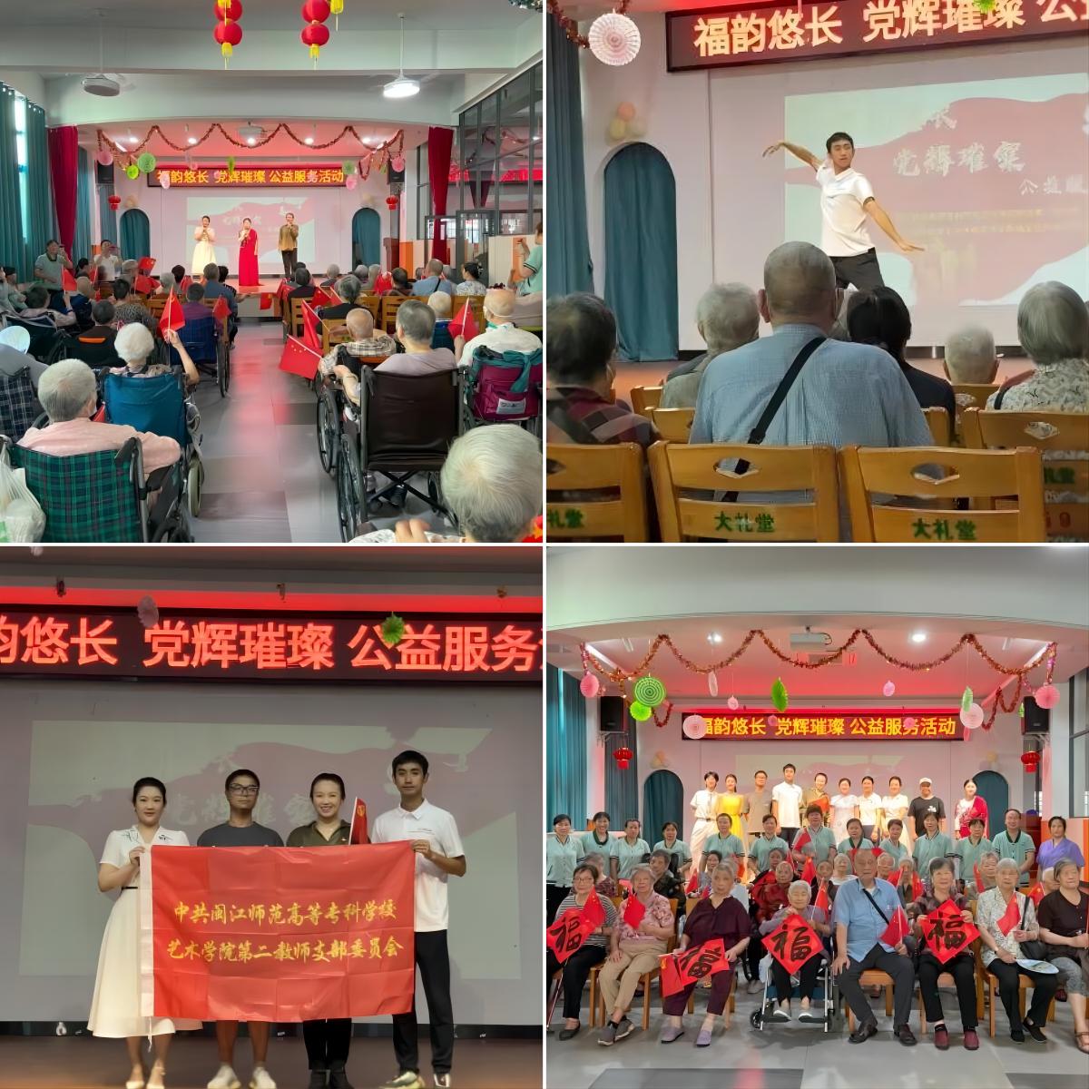 七月流火,黨恩如歌。7月5日,閩江師范高等??茖W校藝術學院教師第二黨支部與藝術學院福文化傳承志愿服務隊攜手走進福建長青養(yǎng)老溫馨家園,共同舉辦了一場別開生面的“福韻悠長,黨輝璀璨”志愿服務活動。此次活動旨在通過多元化的藝術形式,傳承紅色基因,弘揚黨的光輝歷程,同時融入福文化元素,為福建長青養(yǎng)老的長者們傳遞幸福與美好的祝愿。