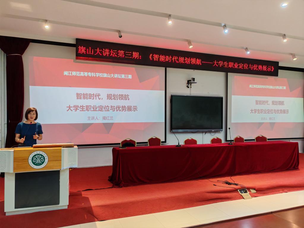 2024年10月14日晚,藝術(shù)學(xué)院于旗山校區(qū)2018教室舉辦旗山大講壇第三期主題講座活動。此次講座特邀全球職業(yè)規(guī)劃師、國家就業(yè)指導(dǎo)師、福建省教育廳就業(yè)創(chuàng)業(yè)培訓(xùn)導(dǎo)師揭紅蘭教授進(jìn)行題為《智能時代,規(guī)劃領(lǐng)航:大學(xué)生職業(yè)定位與優(yōu)勢展示》的職業(yè)規(guī)劃輔導(dǎo)。藝術(shù)學(xué)院團(tuán)委書記周宇航、全體輔導(dǎo)員、畢業(yè)班班主任及2025屆畢業(yè)生共同參與此次講座。