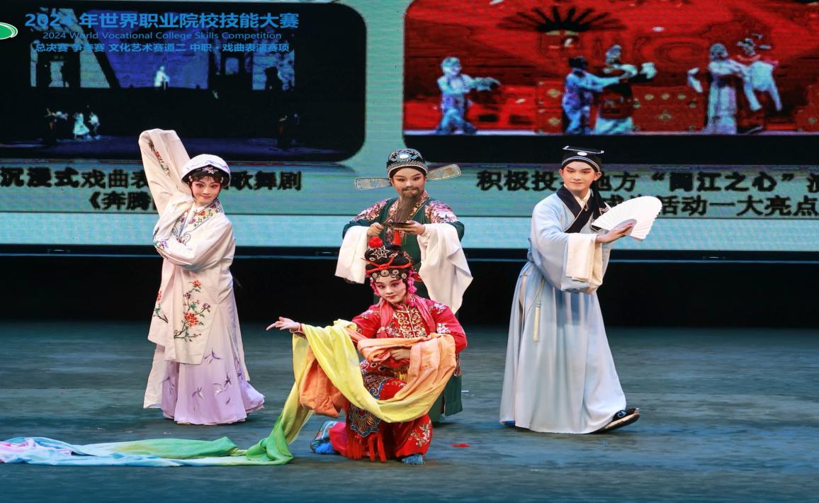 戲曲之花競相綻放,川藝舞臺(tái)英姿颯爽。2024年世界職業(yè)院校技能大賽中職·戲曲表演賽項(xiàng)中,閩劇專業(yè)學(xué)子楊明希、雷舒琳、周杰、孫濼彬四位同學(xué),憑借精湛的各行當(dāng)表演技藝和出色的舞臺(tái)表現(xiàn)力,喜獲銀獎(jiǎng)的殊榮!