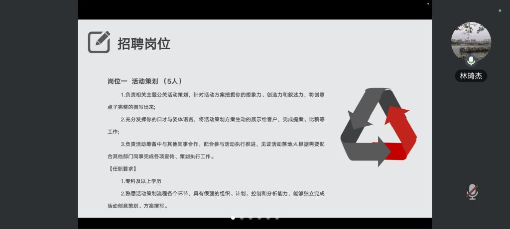 此次招聘宣講會(huì),樂(lè)琦文化傳媒為藝術(shù)學(xué)院的畢業(yè)生提供了三個(gè)方向的崗位。其中,全職的活動(dòng)策劃崗位招聘5人,招生組崗位招聘若干人,聲樂(lè)、器樂(lè)老師崗位各招聘3人。