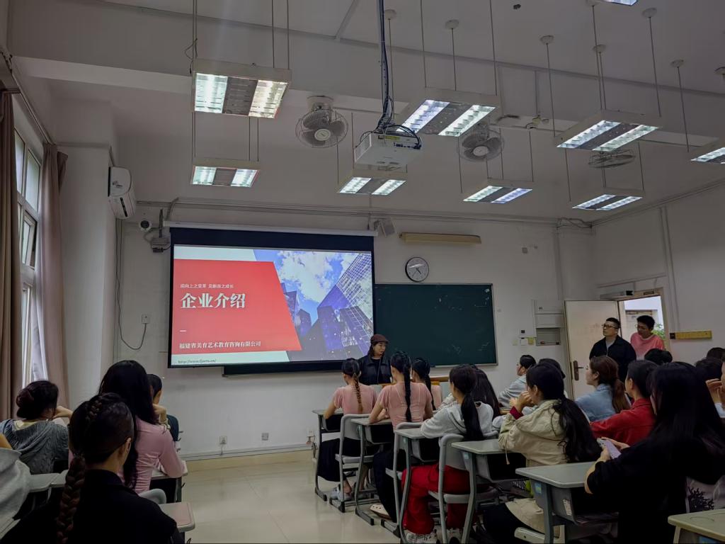 宣講會(huì)伊始,福建省街舞協(xié)會(huì)首先詳細(xì)介紹了企業(yè)發(fā)展情況。福建省街舞協(xié)會(huì)于2016年11月17日登記成立,是由舞蹈藝術(shù)家及工作者組成的專業(yè)性社會(huì)團(tuán)體,多年來(lái),協(xié)會(huì)積極開(kāi)展創(chuàng)作培訓(xùn)、賽事展演、文藝惠民等活動(dòng),為推動(dòng)福建舞蹈事業(yè)發(fā)展和兩岸文化交流作出了積極貢獻(xiàn)。隨后,福州六藝通信息咨詢有限公司負(fù)責(zé)人介紹了企業(yè)情況,并歡迎畢業(yè)生積極投身藝術(shù)實(shí)踐、藝術(shù)研學(xué)及藝術(shù)專項(xiàng)課程體系建設(shè)。福建省美育教育咨詢有限公司負(fù)責(zé)人則介紹了公司的業(yè)務(wù)范圍及對(duì)招聘人才的具體要求。