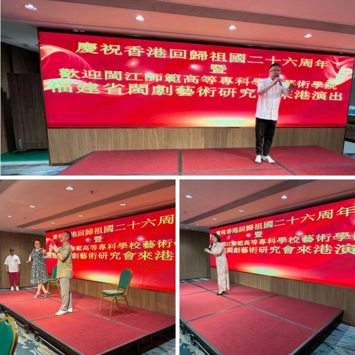 “生在福州城/話帶福州腔/祖宗留下風水寶地/照我閩都泱泱”開嗓即巔峰,出場即高潮。7月3日晚,國家一級演員、梅花獎得主、我校藝術(shù)學院副院長陳洪翔用一首極具閩都風土人情的歌曲《福州我親親的故鄉(xiāng)》,拉開了我校赴港文化交流演出團與荃灣旅港鄉(xiāng)親“慶祝香港回歸祖國懷抱26周年”聯(lián)歡活動的序幕,為在座100多位鄉(xiāng)親重現(xiàn)了風水寶地閩都風采,瞬間抓住了每位在場鄉(xiāng)親的心。